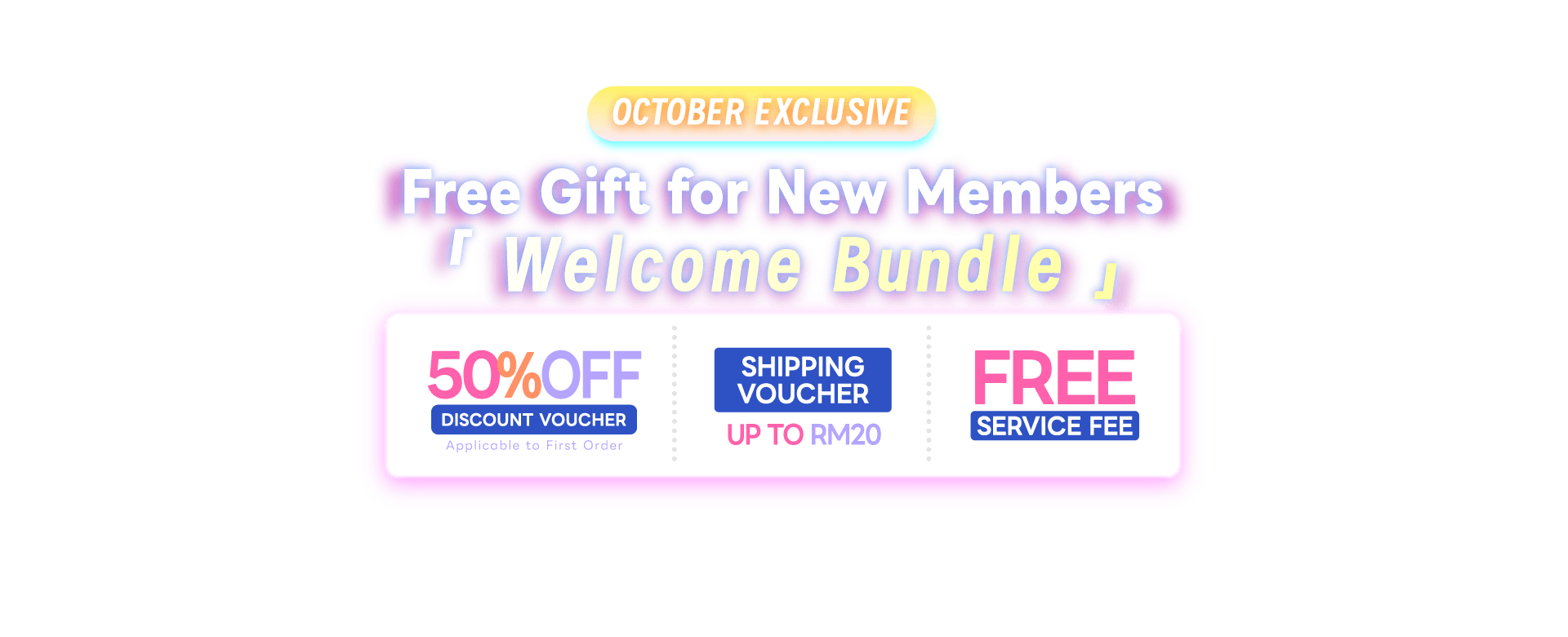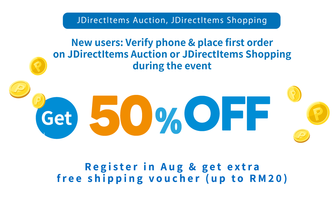 - Upon registering as a member and completing phone verification during the promotion period, your account will receive one "50% OFF Product Discount Coupon" and one "RM20 Free Shipping Coupon".