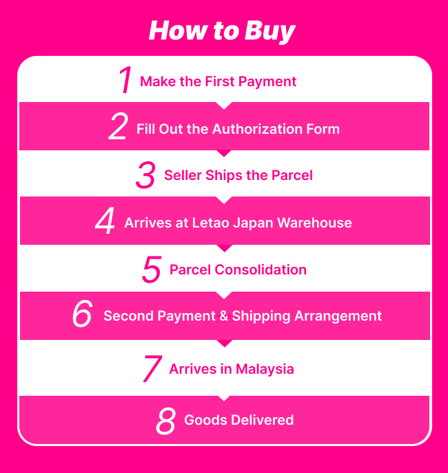 Letao offers a purchasing service that assists you in buying products from Japanese websites. The following outlines the basic purchasing process: