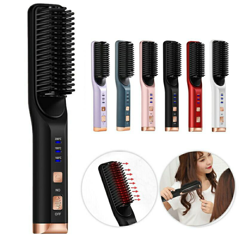ヒートブラシ コードレス 2way ミニブラシ ヘアアイロン コームアイロン 海外対応 ブラシアイロン ストレートブラシ 20秒速熱 3段階温度 LED液晶表示 160〜200℃ ポータブル ブラシ型 簡単スタイリング 静電防止 旅行 出張 通学 通勤 5色 PSE認証