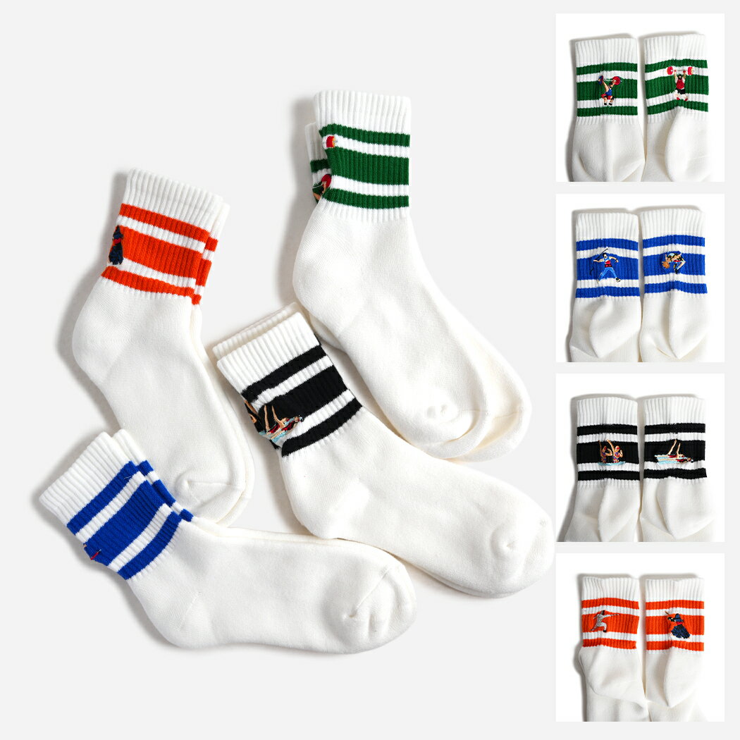 decka BRU NA BOINNE × SHOWATABE SKATER SOCKS EMBROIDERY デカ スケーター ソックス エンブロイダリー 靴下 ( 刺繍 ラインソックス ショート丈 メンズ レディース BNBSW-49-2 )