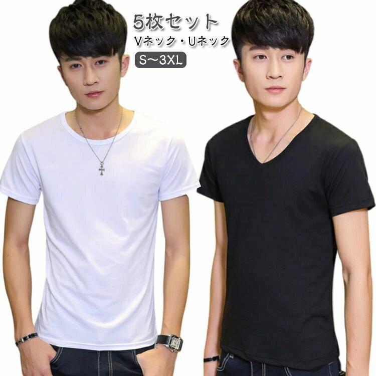 5枚セット インナーシャツ メンズ Vネック Uネック Tシャツ 下着 半袖 クルーネック V首 丸首 大きいサイズ 男性用 アンダーシャツ 長袖V首 長袖Vネック 肌着 紳士 コットン 無地 黒 白