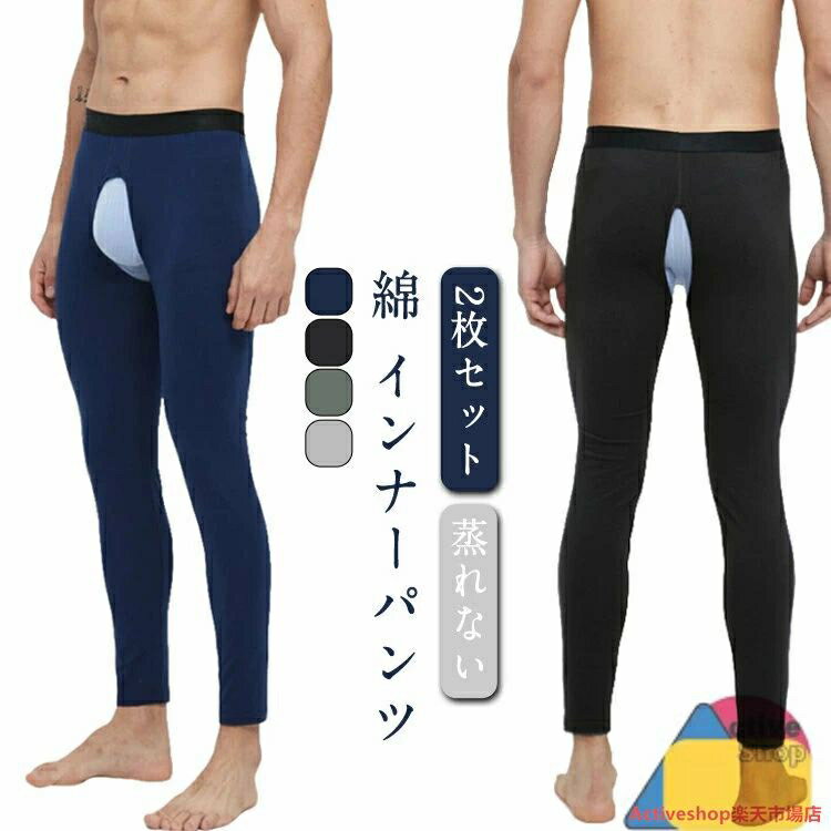 2枚組 前あき レギンス メンズ 綿混 タイツ インナー 下着 蒸れない あったか インナーパンツ ストレッチ スパッツ 防寒 寒さ対策 穴あき ジェンダーレス クロスジェンダー 秋冬 秋 冬 送料無料