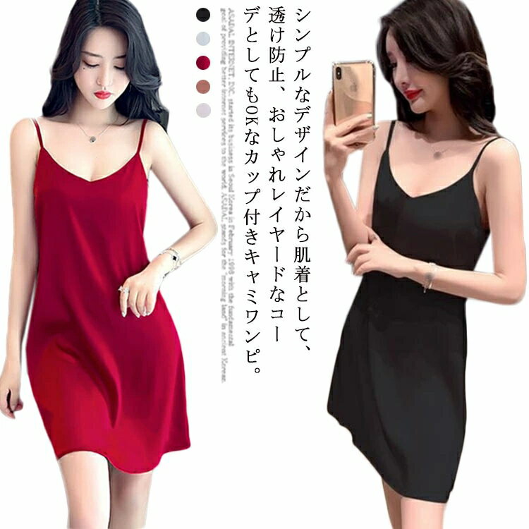 カップ付き スリップドレス インナーワンピ キャミソール ルームウェア 部屋着 インナー ワンピース 接触冷感 ペチコート ノースリーブ ショート丈 夏 M L XL