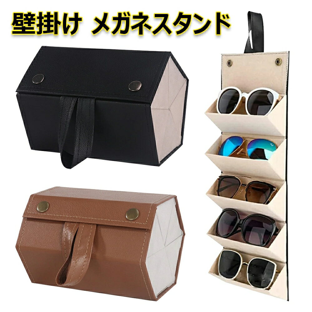 メガネスタンド 5本収納 メガネ収納ケース 壁掛け メガネケース サングラスケース 眼鏡ケース おしゃれ メガネ置き 複数収納 メガネ スタンド サングラスホルダー 軽量 コンパクト 折り畳み 眼鏡 サングラス メガネケース ブラック ブラウン