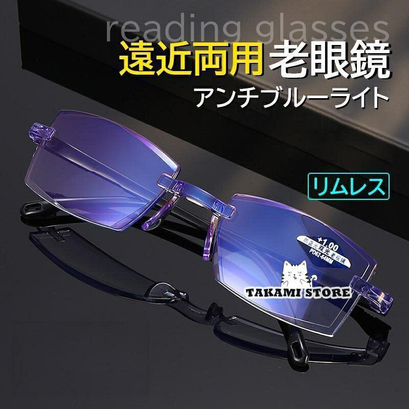 老眼鏡 遠近両用 おしゃれ 縁なし 自動にスマートズーム メンズ レディース ブルーライトカット 度数100-400 PC パソコン用メガネ 40代 50代 60代 老眼レンズ