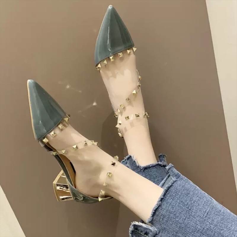 【P2倍&クーポン有】サンダル ミュール 太ヒール チャンキーヒール ポインテッドトゥ ストラップ 幅広 22.5cm 23.0cm 23.5cm 24.0cm 24.5cm 個性的 夏 秋 カラバリあり ホワイト 白 カーキグリーン 緑 無地 パーティー イベント 外遊び 外出 日常使い 楽ちん