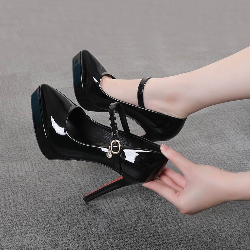 【P2倍&クーポン有】 レディース ヒールパンプス ストラップシューズ 美脚 ハイヒール 大人可愛い おしゃれ ラブリー ポインテッドトゥ かわいい 脚長 かっこいい 光沢感 レトロ きれいめ シンプル カジュアル ピンヒール エレガント ストラップ 上品 厚底