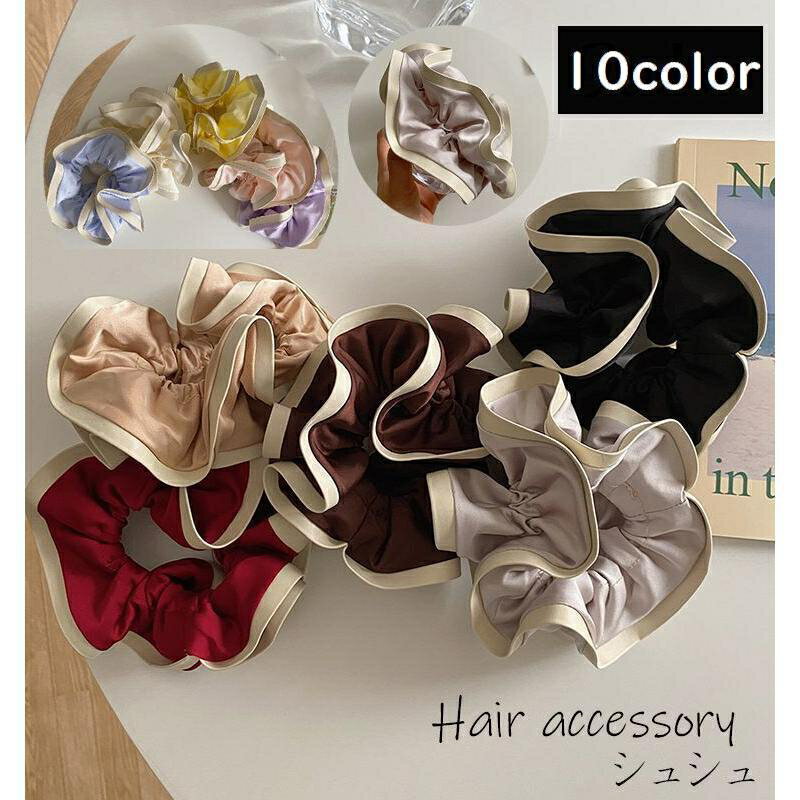 シュシュ ヘアアクセサリー ヘアゴム レディース バイピング バイカラー サテン調 おしゃれ シンプル オフィス 普段使い 上品 フォーマル カジュア
