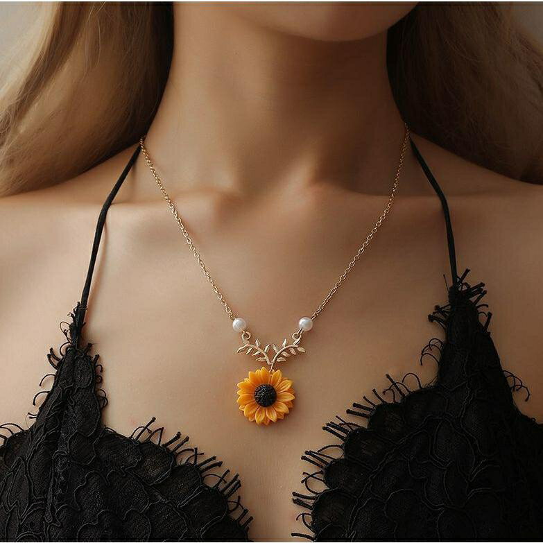ネックレス アクセサリー フェイクパール ひまわり ヒマワリ 向日葵 レディース かわいい 女性 婦人 おしゃれ プレゼント 誕生日 お出かけ 外出