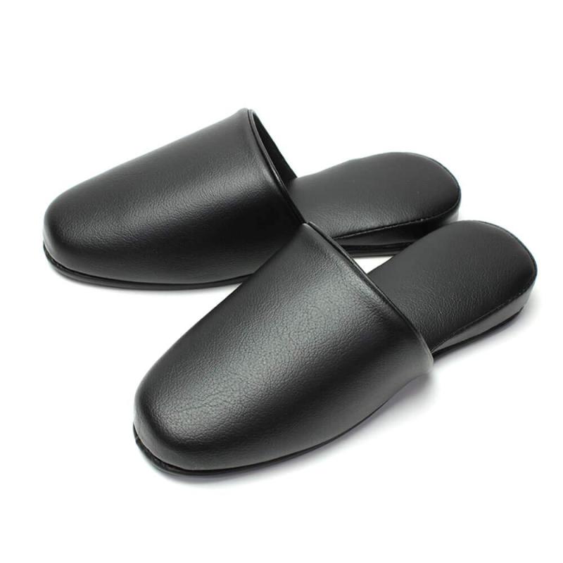 [HYBRIDWORKS] 高級レザー調 スリッパ 抗菌 約26cm 男女兼用 水拭き可 来客用 業務用 前閉じ
