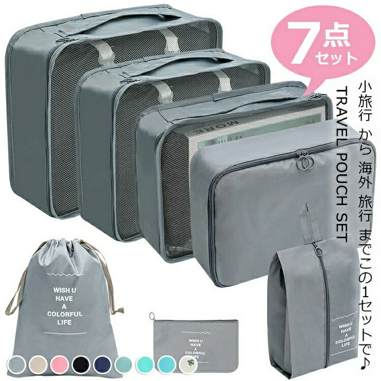 トラベルポーチ セット 旅行用 収納袋セット 7点セット 多機能 収納袋 パッキング トラベルグッズ 防水 スーツケース 収納 アメニティ ポーチ 小物 立体 メッシュ 折りたたみ シューズケース シューズバッグ 巾着袋 おしゃれ 超便利