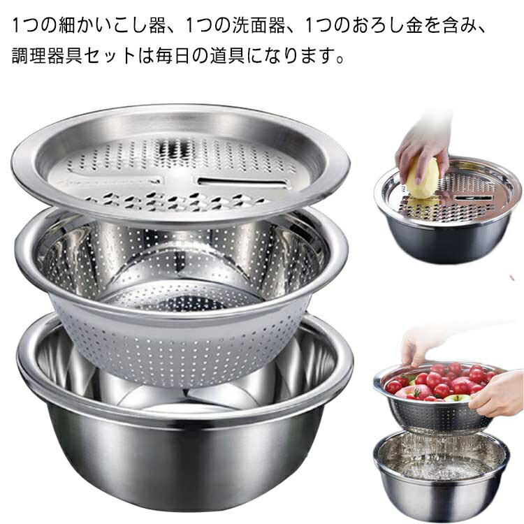 野菜カッター 3点セット 水切り 米とぎ ザル 千切り スライサー 野菜カッター 直接加熱可能 野菜 果物洗い ボウル おろし金セット キッチンスライサー 野菜調理器セット 初心者 細切り みじん切り