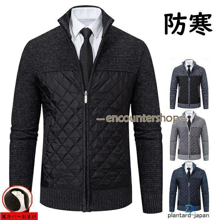 ニット カーディガン メンズ ジャケット 裏起毛 アウター ジップアップ 大きいサイズ 無地 通勤 暖かい 秋冬