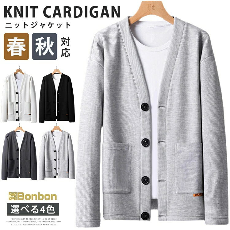 カーディガン メンズ ニットカーディガン 無地 ニットジャケット ライトジャケット 羽織 カジュアル 大きいサイズ おしゃれ 春服 秋服 通勤 通学 ワッフル編み ビジネス メンズファッション 20代 30代 40代 50代 ルームウェア vネック シンプル