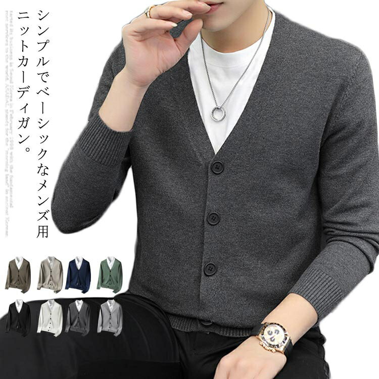 ニット カーディガン メンズ セーター スリム 紳士服 ビジネス タイト 細身 カジュアル ジャケット 薄手 無地 春服 ニットカーディガン 長袖 きれいめ オフィス ニットジャケット ライトアウター Vネック シンプル 春 秋 6色 M−4XL
