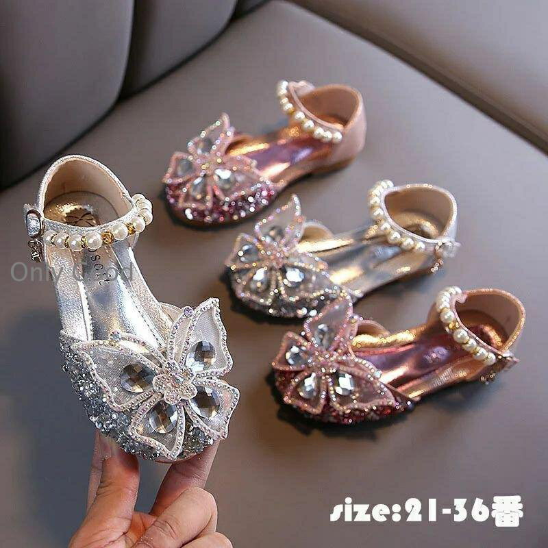 靴 キッズ お姫様靴 春夏秋 プリンセスシューズ バタフライ 女の子 子ども キッズシューズ パール付き キラキラ 滑り止め 子供靴 姫系 女児 可愛い か