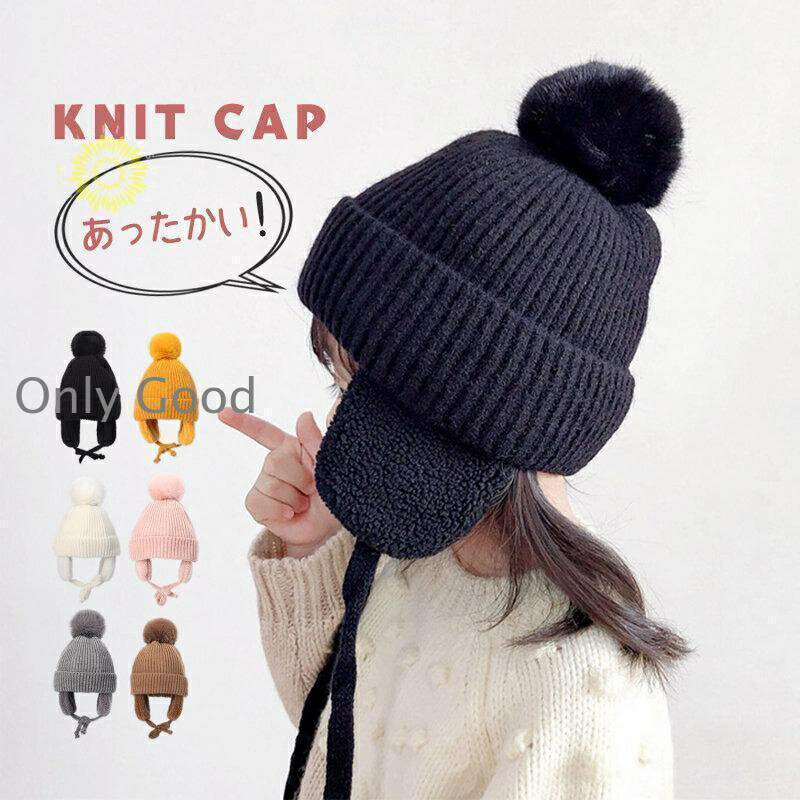 ニット帽 子供 ニットキャップ 女児男児 帽子 キッズ キャップ 裏ボア 男女兼用 耳あて付き 女の子 男の子 ポンポン ふわふわ 防寒保温