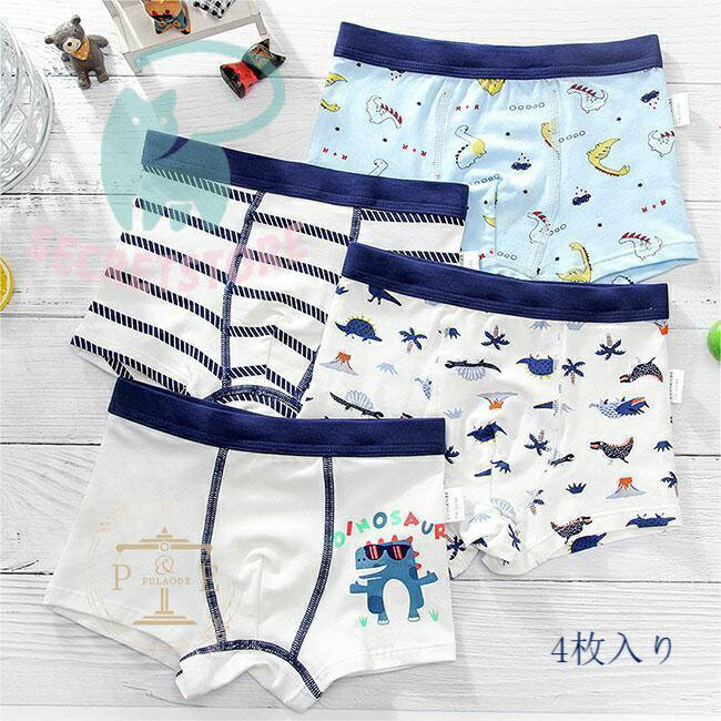 男の子 ボクサーパンツ 4枚入 下着パンツ 子供 ボクサーショーツ 男児 ボクサーブリーフ ボーダー ストライプ アニマル柄 おしゃれ 下着