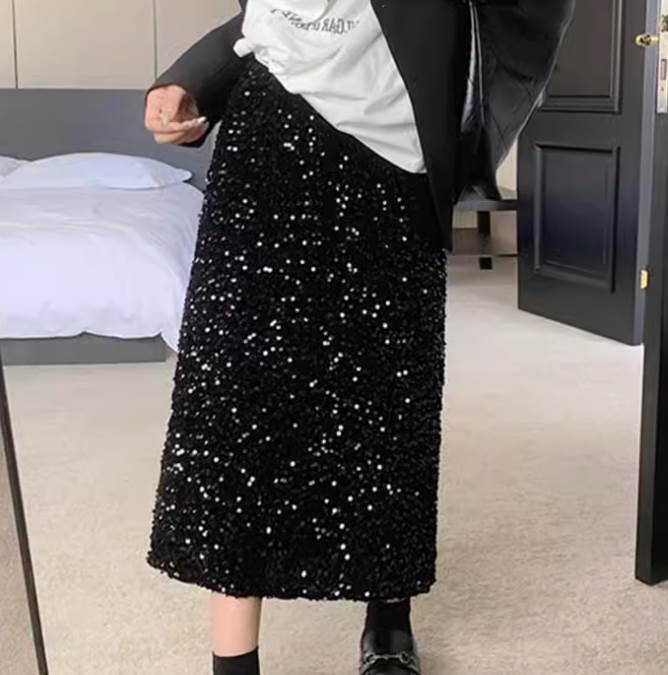 【P2倍&クーポン有】スカート ボトムス レディース ペンシル ロング 送料無料 個性的 ロング アンクル タイト スパンコール 高見え 格上げ 細見え マーブル 色展開 ブラック グレー フリーサイズ かわいい ガーリー きれいめ フェミニン モダン ワイル
