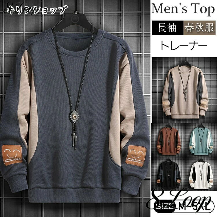 トレーナー メンズ 大きいサイズ クルーネック スウェットトレーナー 長袖 薄手 ストリート トップス プルオーバー ビッグトレーナー メンズトレーナー スウェット ルームウェア おしゃれ ファッション 切り替え 部屋着 春物 秋服 春 秋 冬