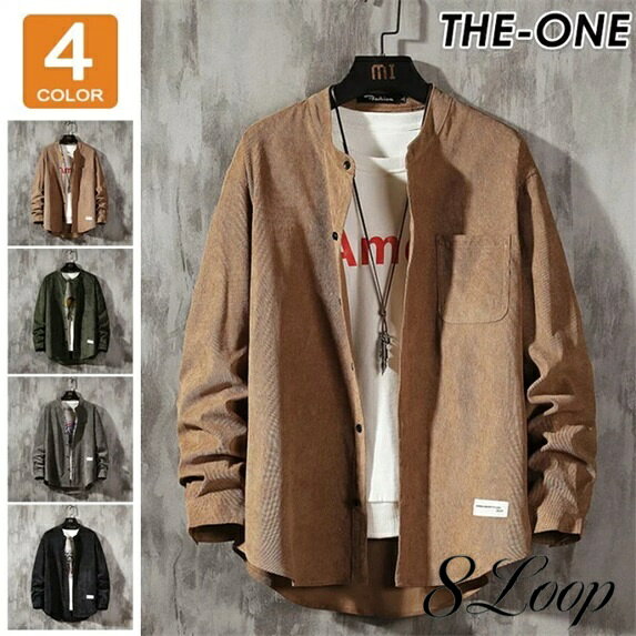 コーデュロイシャツ メンズ カジュアルシャツ シャツ 長袖 バンドカラー コーデュロイ 無地 春服 春物 秋服 秋物 送料無料