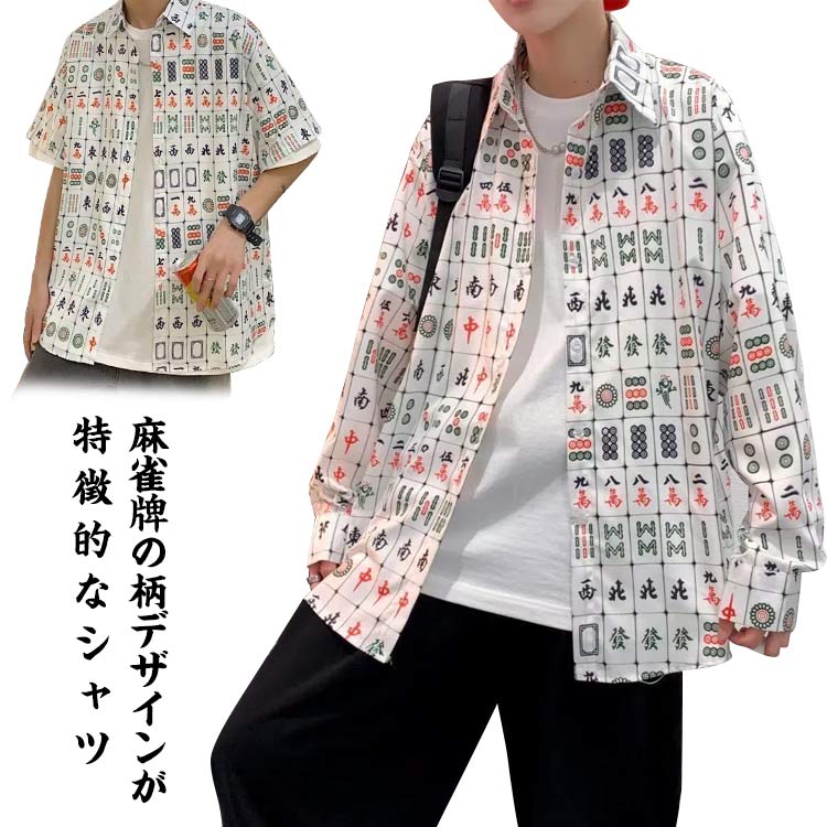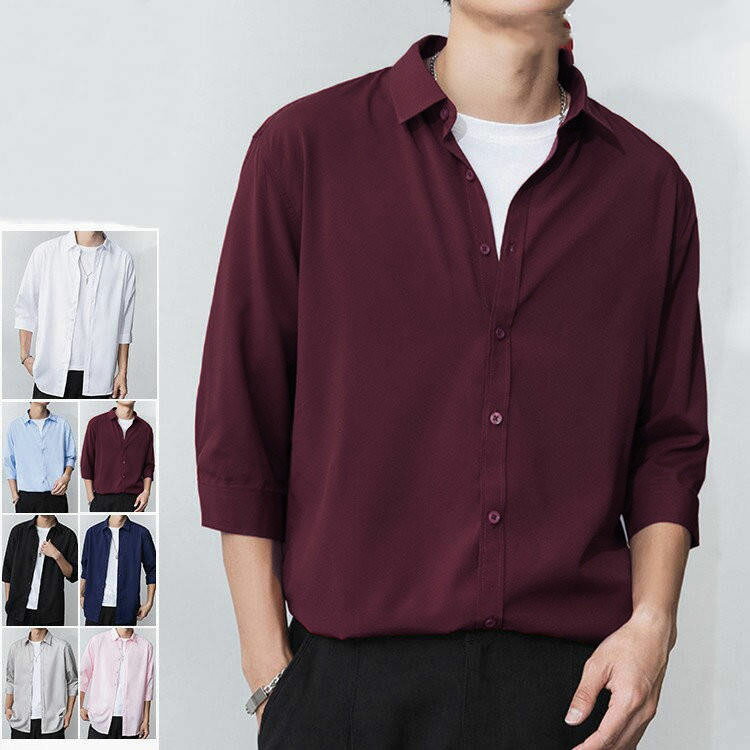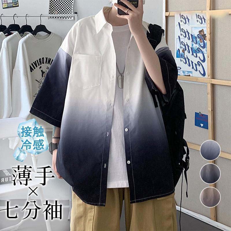 シャツ メンズ 半袖シャツ カジュアルシャツ グラデーション 七分袖 ブラウス トップス 開襟シャツ 薄手 速乾 涼感 リラックス オーバーサイズ