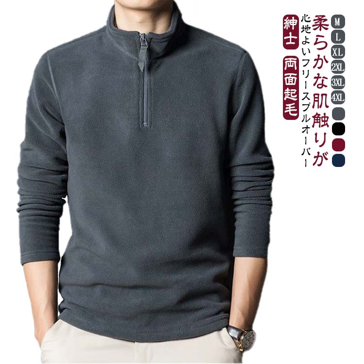 ギフト ZIP フリース もこもこ 暖かい トレーナー 紳士 あったか トップス 秋冬 プルオーバー 長袖 カットソー カジュアル スウェット ハーフジップ ハイネック 春服 パーカー 両面起毛 おしゃれ 冬物 ゆったり 体型カバー 無地 シンプル 大きいサイズ プレゼント メンズ