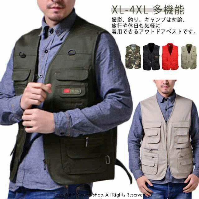 ベスト メンズ 多機能ベスト フィッシングベスト チョッキ アウトドア ジレ お釣りベスト 農業 仕事 日用大工 作業着 カメラマン 大きいサイズ