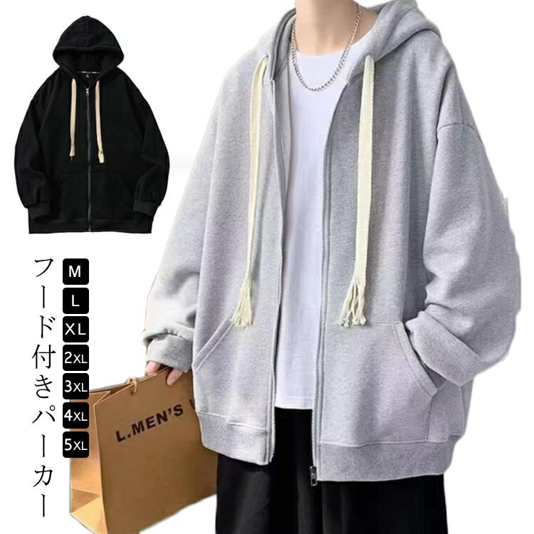 ジップアップパーカ おしゃれ ビッグパーカー ビッグシルエット パーカー 無地 ゆったり 厚手 フード付きパーカー 大きいサイズ
