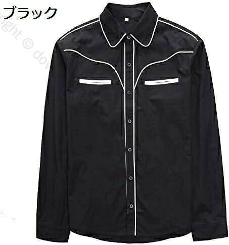 メンズ 長袖 綿シャツ 50代 ボーリング スタイル カジュアル ファッション オシャレ パンク ロック レトロ アメリカロカビリー ブラック 人気デザイン 春秋向け着回し自在