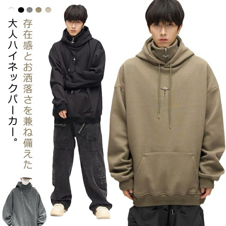 ボリュームカラー パーカー 男女兼用パーカー ハイネック プルオーバーパーカー ストリート系 大きサイズ レディース メンズ 春服 秋服