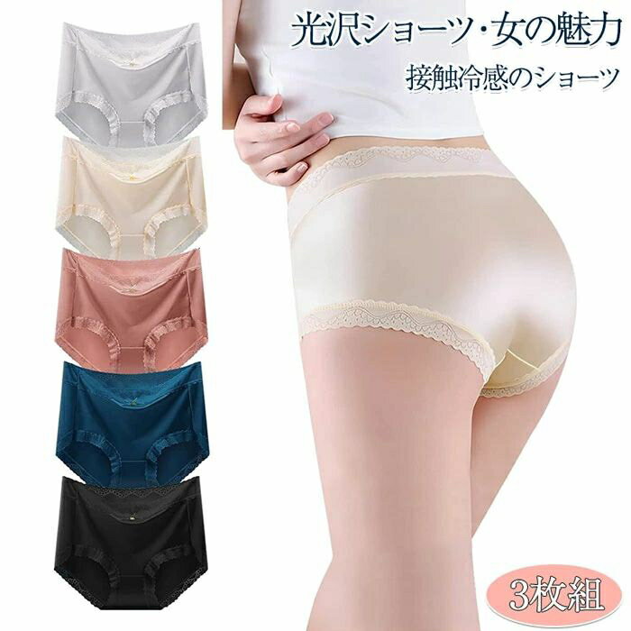 ショーツ レディース ショーツ レースレディース アイスシルク サテン 光沢 ショーツ 接触冷感 ミッドウエストショーツ サテン 下着 シームレスショーツ 冷感 パンツ レディース 美尻ショーツ すっぽりショーツ レギュラーショーツ