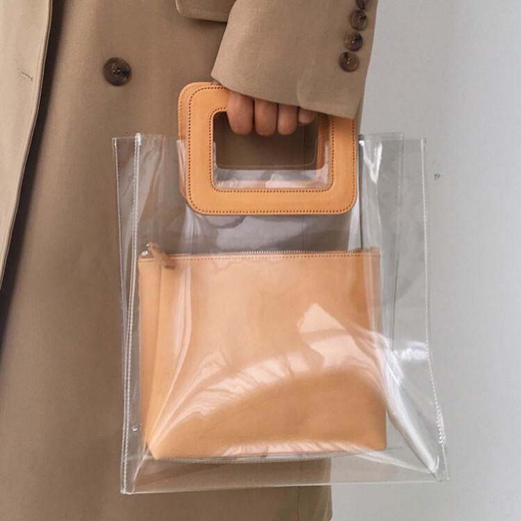 【P2倍&クーポン有】ハンドバッグ 斜めがけ 肩がけ 手持ち レディース ビニール ポーチ 大容量 便利 コンパクト 四角 チェーン ビニール 大人可愛い きれいめ お洒落 こなれ感 無地 デート アウトドア リゾート 旅行 海 プール 格上げ モテ 夏 ホワイト ブラウン