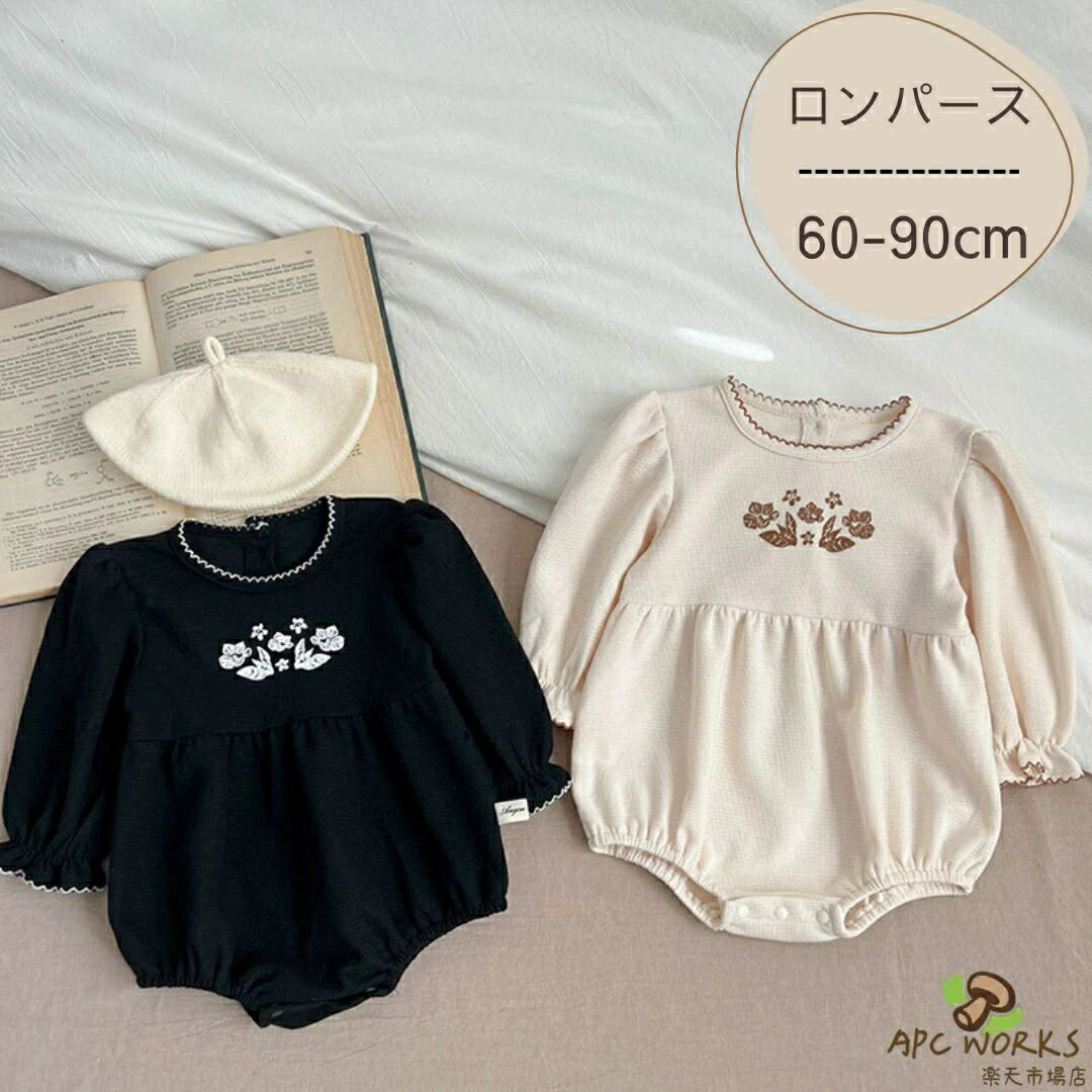 女の子 ベビー 喪服 ロンパース 長袖 かわいい おしゃれ ベビー ベビー服 服 カバーオール 赤ちゃん 秋 秋冬 冬 赤ちゃん服 子供服 ブラック 黒 ベージュ 出産祝い 結婚式 ハーフバースデー 冠婚葬祭 礼服 シンプル モノトーン 60 70 80 90