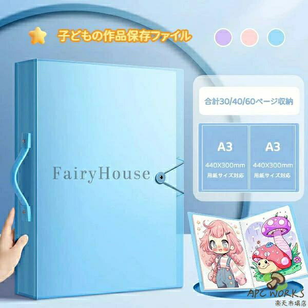 子ども の 作品 収納 ファイル A3 8K サイズ アート ポートフォリオ 30 ポケット 40 ポケット 60 ポケット 選べる ハンドル 付き 賞状 整理 卒園 入学 準備 絵 の 保存 ファイル