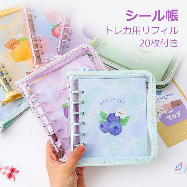 シール帳 コレクトブック バインダー トレカ用リフィル20枚付き 3リング 3穴 ミニ ミニサイズ 小さめ チェック トレカケース ラメ クリア トレカ ファスナー シール
