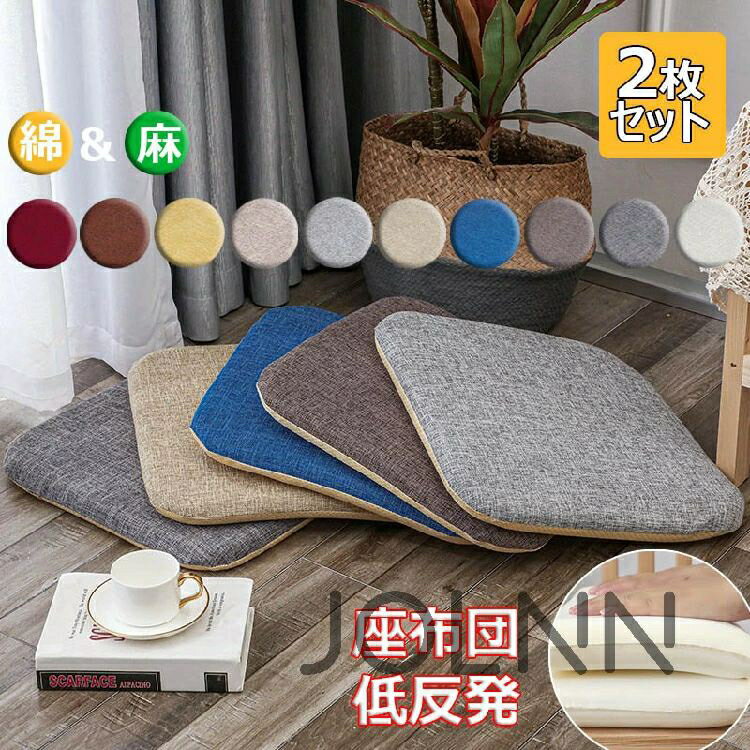 チェアパッド 座布団 低反発 綿麻 フロアクッション 洗えるカバー イスクッション 四角/円角 椅子用 滑り止め ダイニングチェア用 チェアクッション 畳用 スクエアクッション 40×40 45×45 50×50