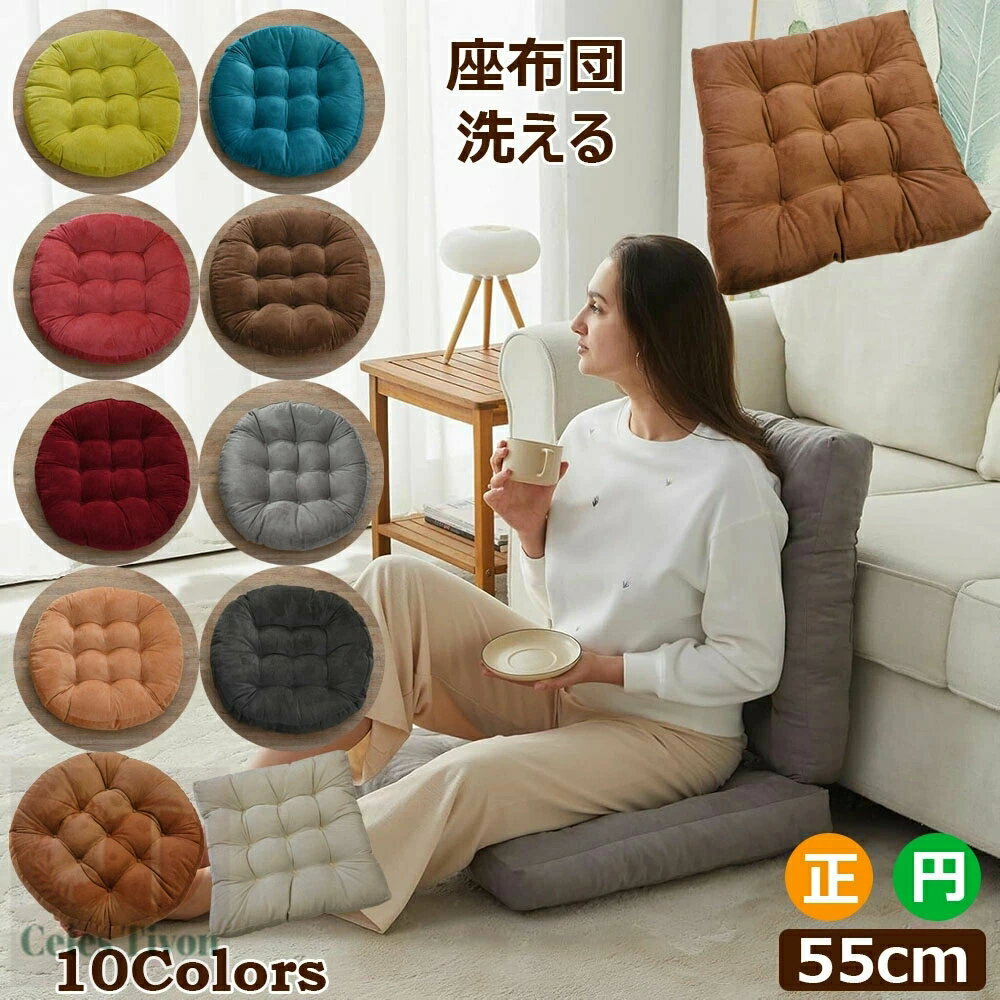 座布団 フロアクッション 大きい 厚め おしゃれ ざぶとん クッション 55x55x10cm お尻が痛くならない 和座布団 可愛い 厚手 座りやすい 椅子・ソファー用 和室 人気 座り心地いい お尻に優しい 体圧分散 綿 コール天 円形 角形