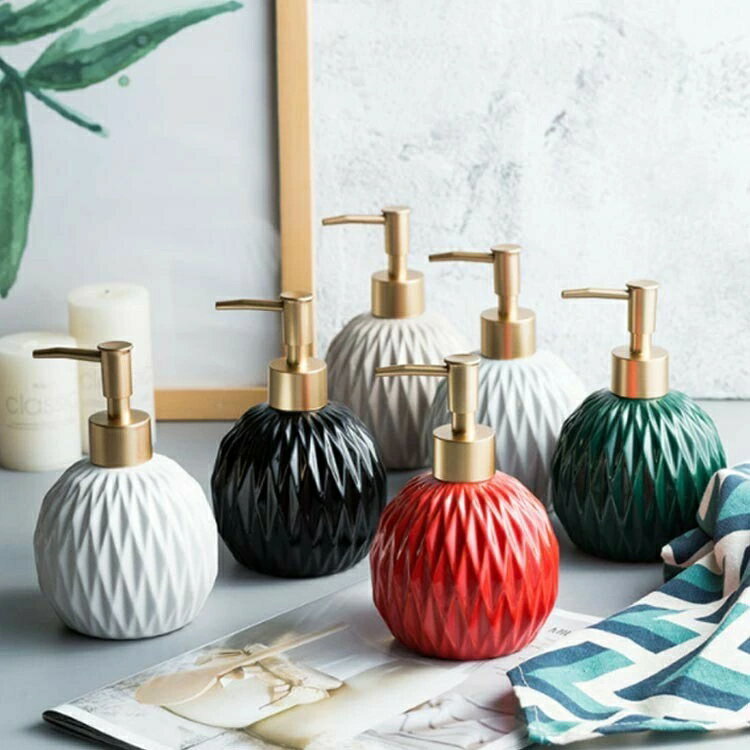 ディスペンサー 雑貨 ソープディスペンサー 北欧風 セラミック ボトル 容量400ml キラキラダイヤ詰め替えボトル ハンドソープ トイレ お風呂 バス 洗面用品