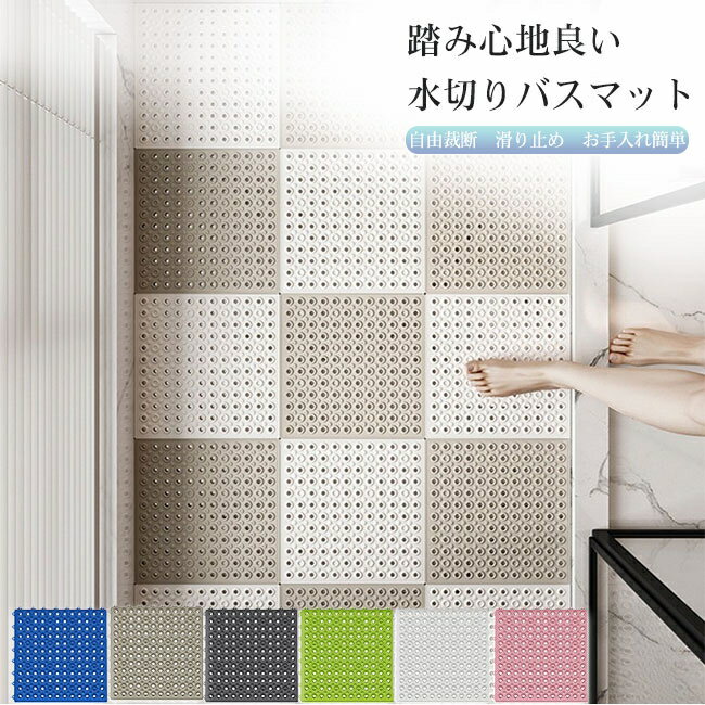 抗菌 無臭 防カビ シャワーマット 組み合わせ自由 カット可能 吸盤付き バスマット ジョイントマット 浴室マット 滑り止めマット