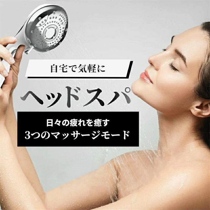 ヘッドスパシャワーヘッド 6段階水流 ポイントマッサージモード搭載 マイクロナノバブル G1/2規格 6モード バス用 手元止水