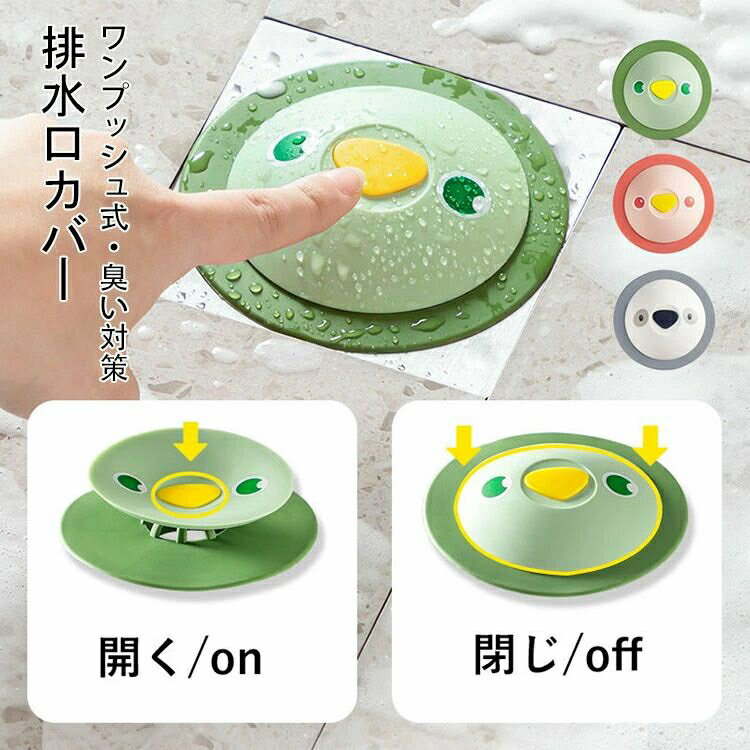 送料無料 排水口カバー 臭い対策 ワンプッシュ式 蓋 排水溝カバー 排水口 シリコン 水止めキャップ シンク 風呂 浴槽 洗面台 バスタブ バスルーム キッチン 床ドレン 排水口用品 防臭 防虫 かわいい おしゃれ 便利アイテム ヘアキャッチャー 止水栓 水止め キッチン用品 3色