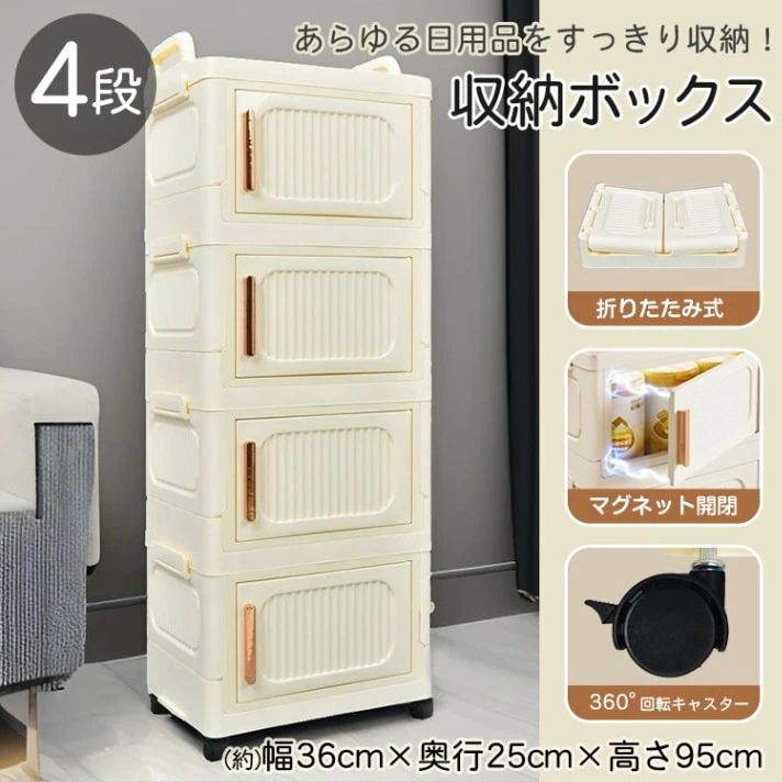 【最大2000OFF】収納ボックス 収納ケース 収納箱 4段 折りたたみ マグネット開閉 積み重ね
