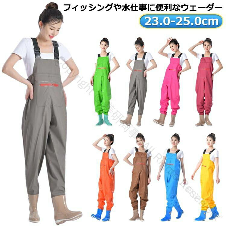 胴長 レディース チェストハイウェーダー フィッシングウェーダー 水中作業 用 胴付き長靴 作業靴 除雪 水仕事 釣り用 女性用