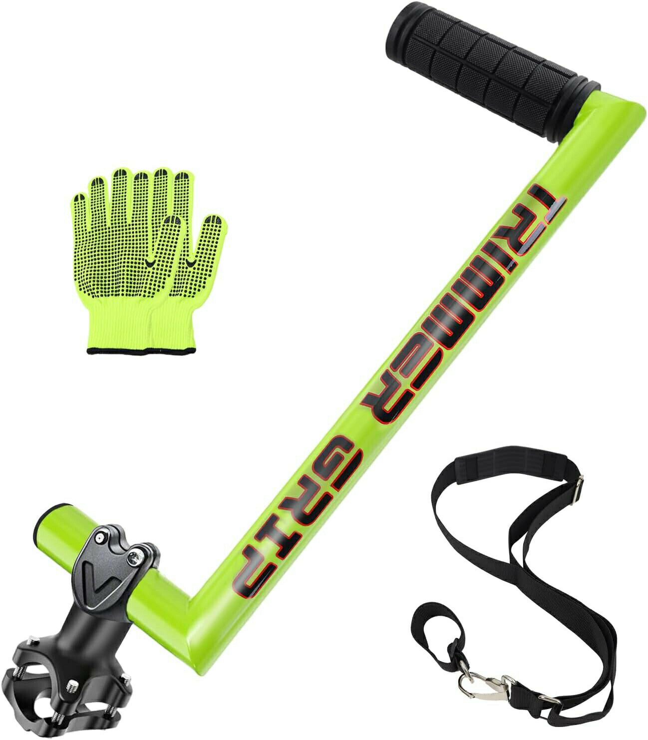 ストリングトリマーハンドル 草刈り機 ハンドル トリマー グリップ 刈払い機 アタッチメント アルミニウム合金ウ人間工学に基づいた芝刈り機用 トリマーグリップ 快適さ 調整可能なトリマーグリップ 芝刈り機、芝生ケア、造園用-グリーン(肩ストラップ付き+手袋)