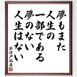 新渡戸稲造の名言「夢もまた人生の一部である、夢のない人生はない」手書き書道色紙額/受注後の毛筆直筆