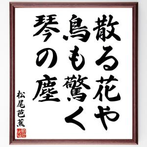 松尾芭蕉の短歌・俳句「散る花や、鳥も驚く、琴の塵」手書き書道色紙額/受注後の毛筆直筆