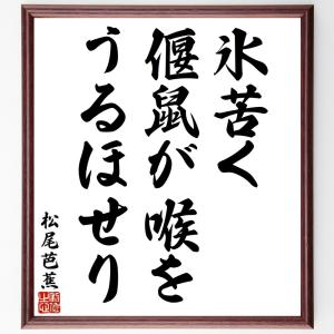 松尾芭蕉の短歌・俳句「氷苦く、偃鼠が喉を、うるほせり」手書き書道色紙額/受注後の毛筆直筆