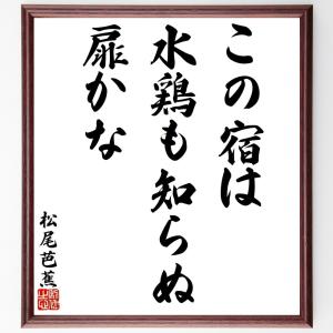松尾芭蕉の短歌・俳句「この宿は、水鶏も知らぬ、扉かな」手書き書道色紙額/受注後の毛筆直筆