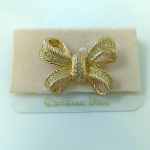 クリスチャンディオール リボン ブローチ ラインストーン ゴールドカラー